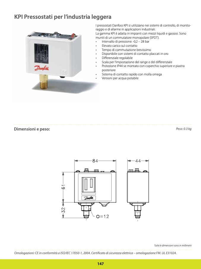 I pressostati Danfoss KPI si utilizzano nei sistemi di controllo, di monito-