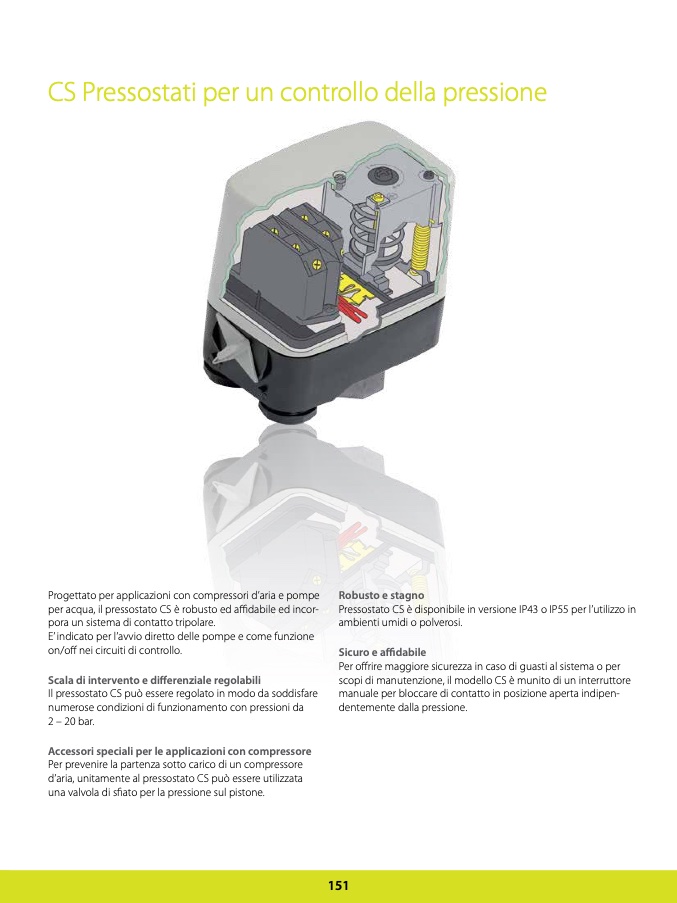 per acqua, il pressostato CS è robusto ed affidabile ed incor-