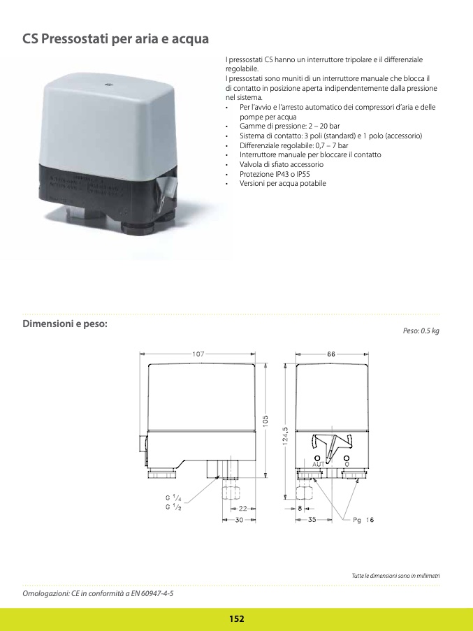 I pressostati CS hanno un interruttore tripolare e il differenziale