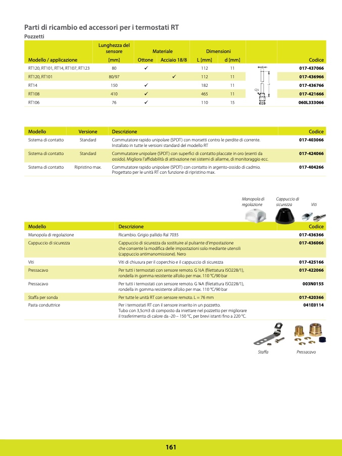 Per i termostati RT con il sensore inserito in un pozzetto.