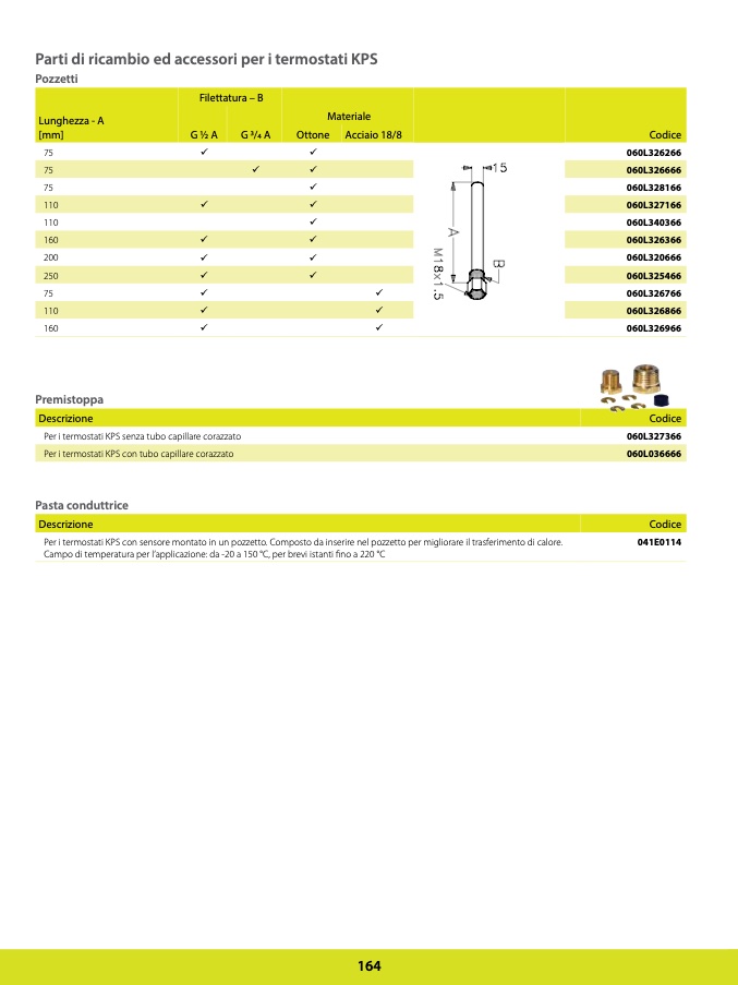Per i termostati KPS con sensore montato in un pozzetto. Composto da inserire nel pozzetto per migliorare il trasferimento di calore.