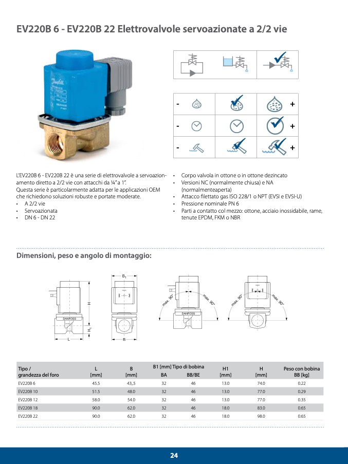 L’EV220B 6 - EV220B 22 è una serie di elettrovalvole a servoazion-
