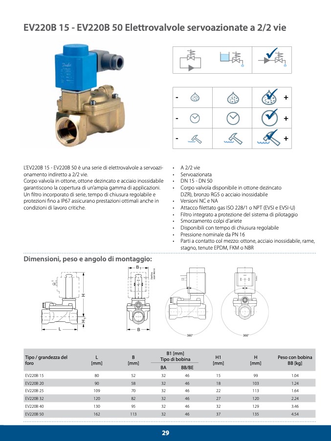 L’EV220B 15 - EV220B 50 è una serie di elettrovalvole a servoazi-
