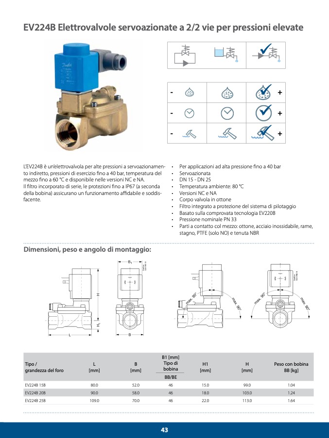L’EV224B è un’elettrovalvola per alte pressioni a servoazionamen-