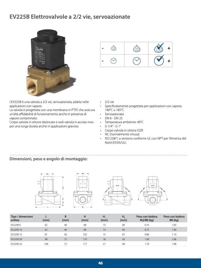 L’EV225B è una valvola a 2/2 vie, servoazionata, adatta nelle