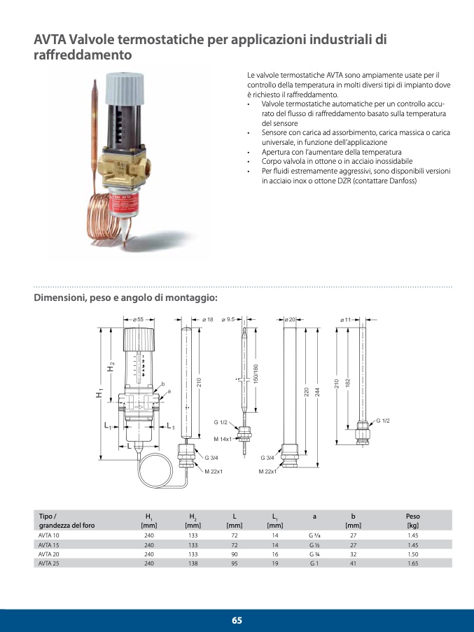 Le valvole termostatiche AVTA sono ampiamente usate per il