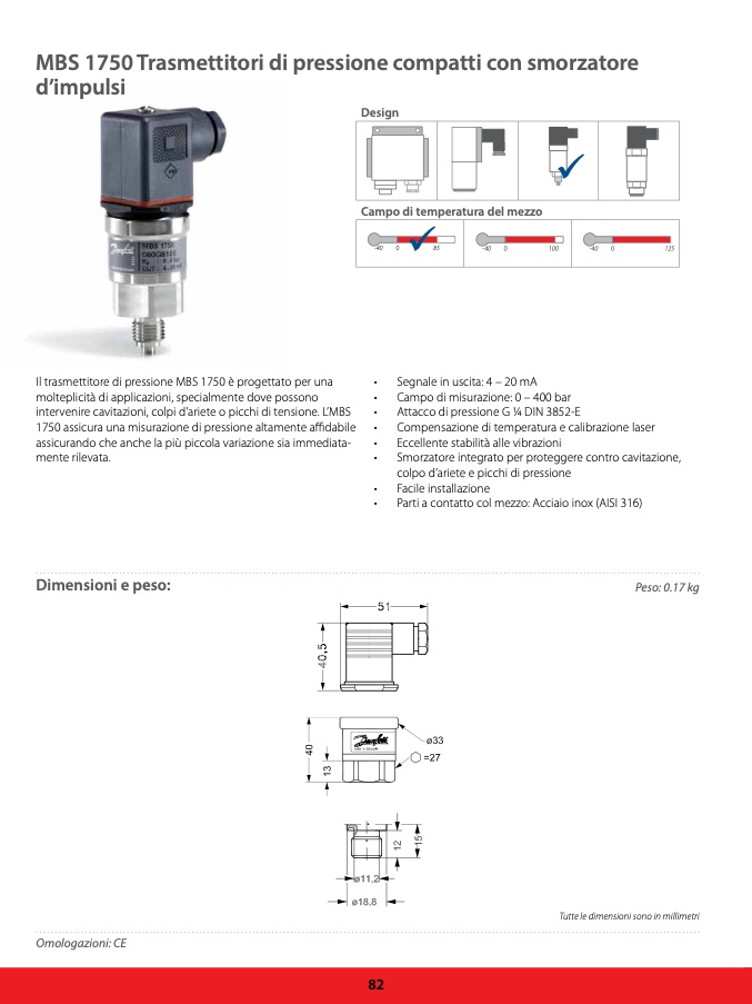 Il trasmettitore di pressione MBS 1750 è progettato per una