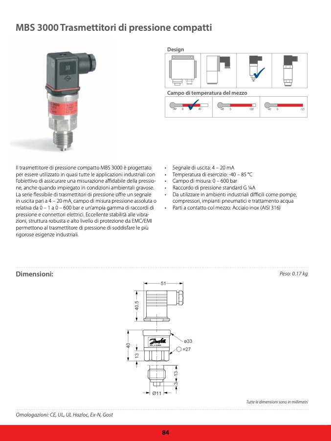 Il trasmettitore di pressione compatto MBS 3000 è progettato