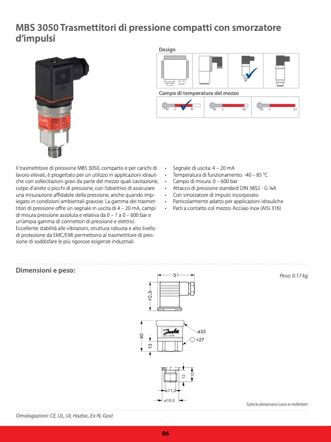 Il trasmettitore di pressione MBS 3050, compatto e per carichi di •
