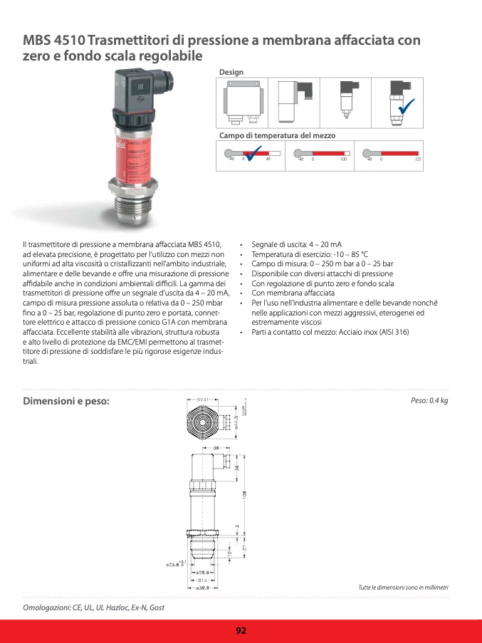 Il trasmettitore di pressione a membrana affacciata MBS 4510,
