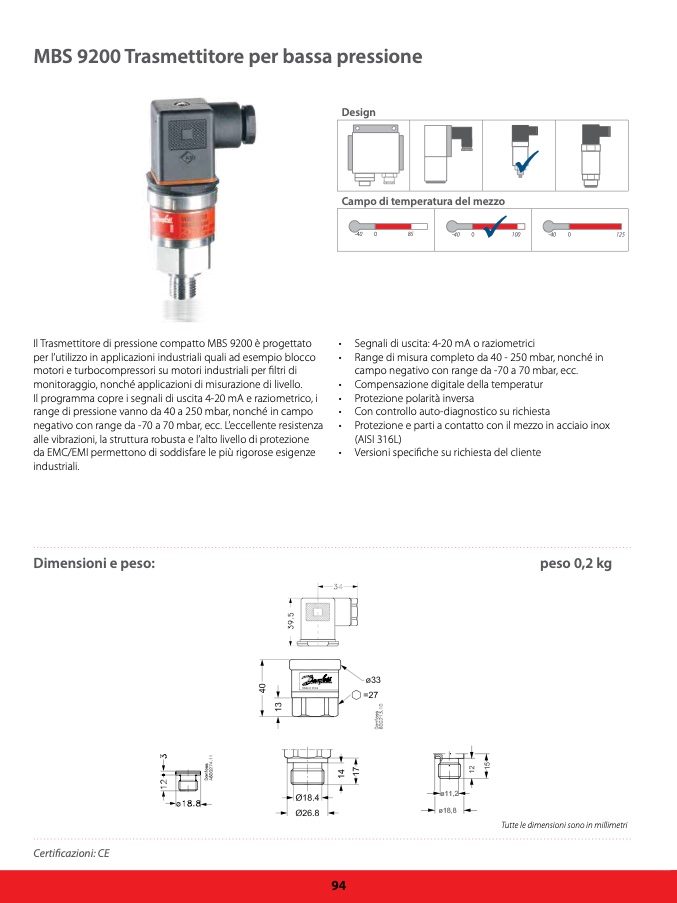 Il Trasmettitore di pressione compatto MBS 9200 è progettato