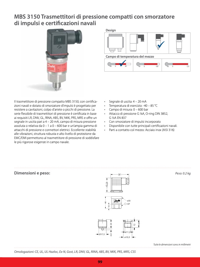 Il trasmettitore di pressione compatto MBS 3150, con certifica-