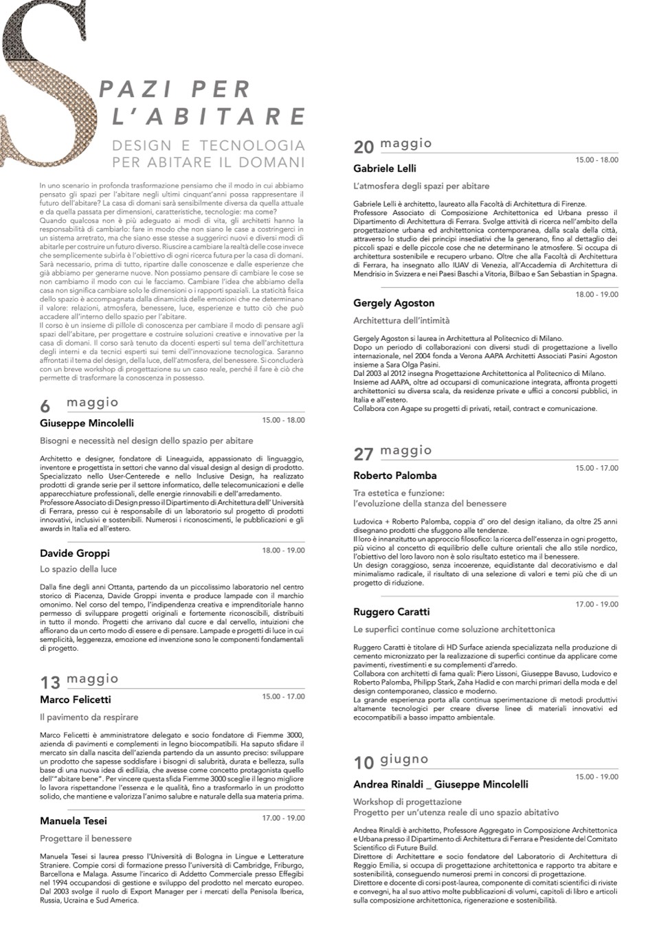 affrontati il tema del design, della luce, dell’atmosfera, del benessere. Si concluderà