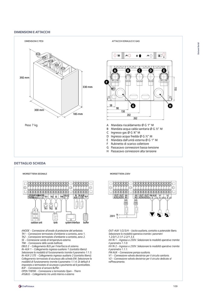 V1 - Connessione valvola deviatrice per il circuito sanitario.