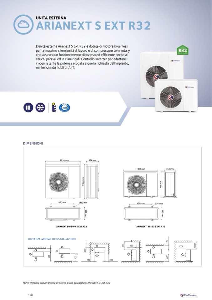 L’unità esterna Arianext S Ext R32 è dotata di motore brushless