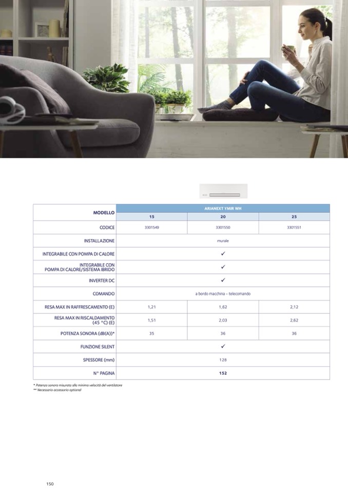 * Potenza sonora misurata alla minima velocità del ventilatore