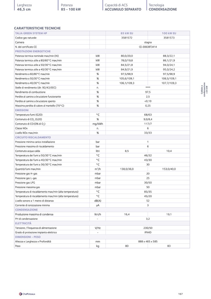 Temperatura dei fumi a 40/30°C max/min