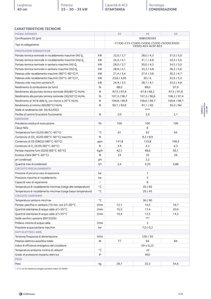Portata specifica in sanitario (10 min. con ΔT=30°C