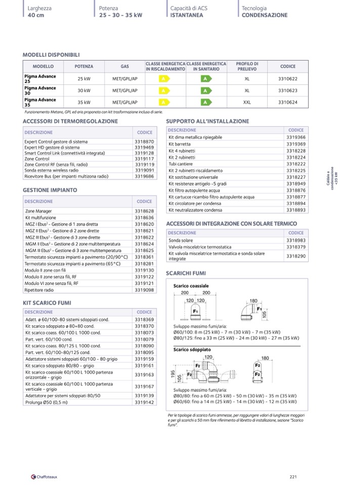 Ø80/125: fino a 33 m (25 kW) - 24 m (30 kW) - 27 m (35 kW)