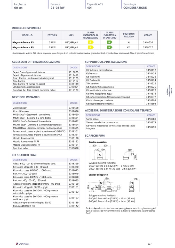 Ø80/125: fino a 21 m (25 kW) - 24 m (35 kW)