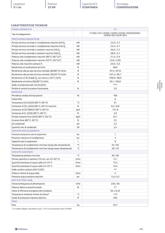 * Con caldaia collegata a rete elettrica e gas, *-20°C con kit opzionale codice 3318954