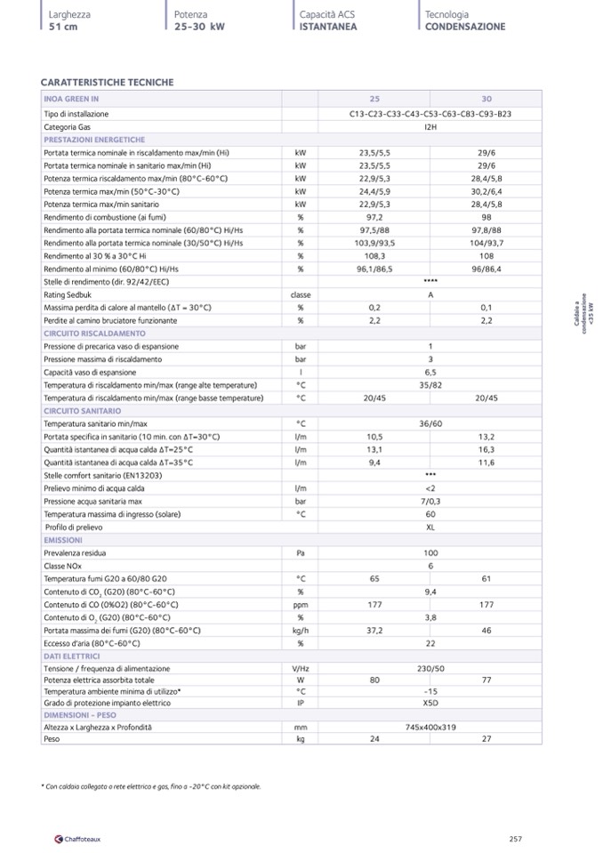 * Con caldaia collegata a rete elettrica e gas, fino a -20°C con kit opzionale.