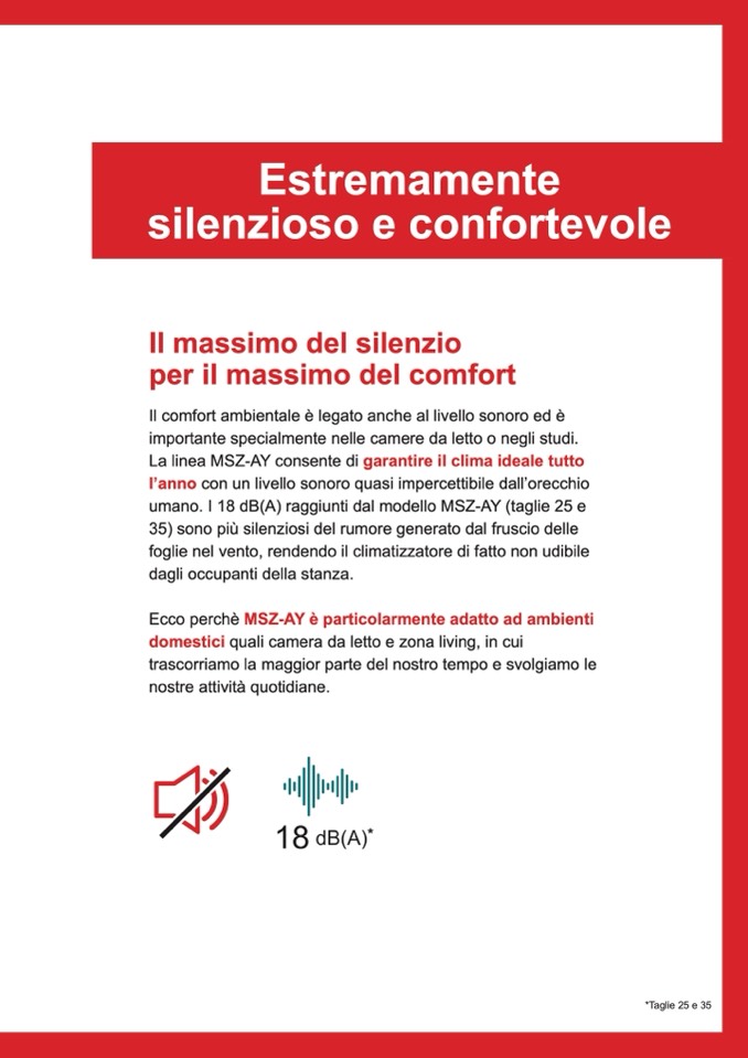 umano. I 18 dB(A) raggiunti dal modello MSZ-AY (taglie 25 e