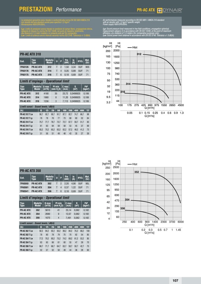 Le prestazioni aerauliche sono rilevate in conformità alla norma EN ISO 5801/AMCA 210