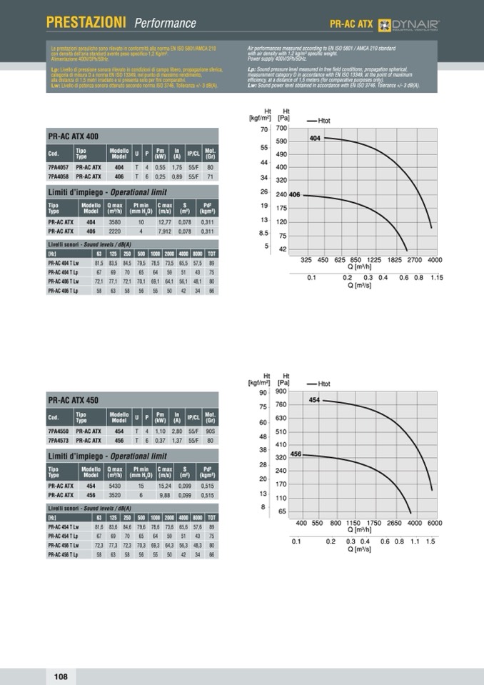 Le prestazioni aerauliche sono rilevate in conformità alla norma EN ISO 5801/AMCA 210