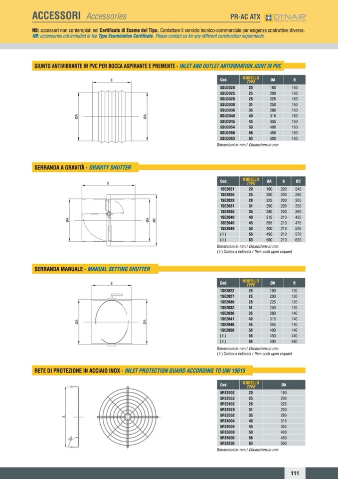 NB: accessories not included in the Type Examination Certificate. Please contact us for any different construction requirments.