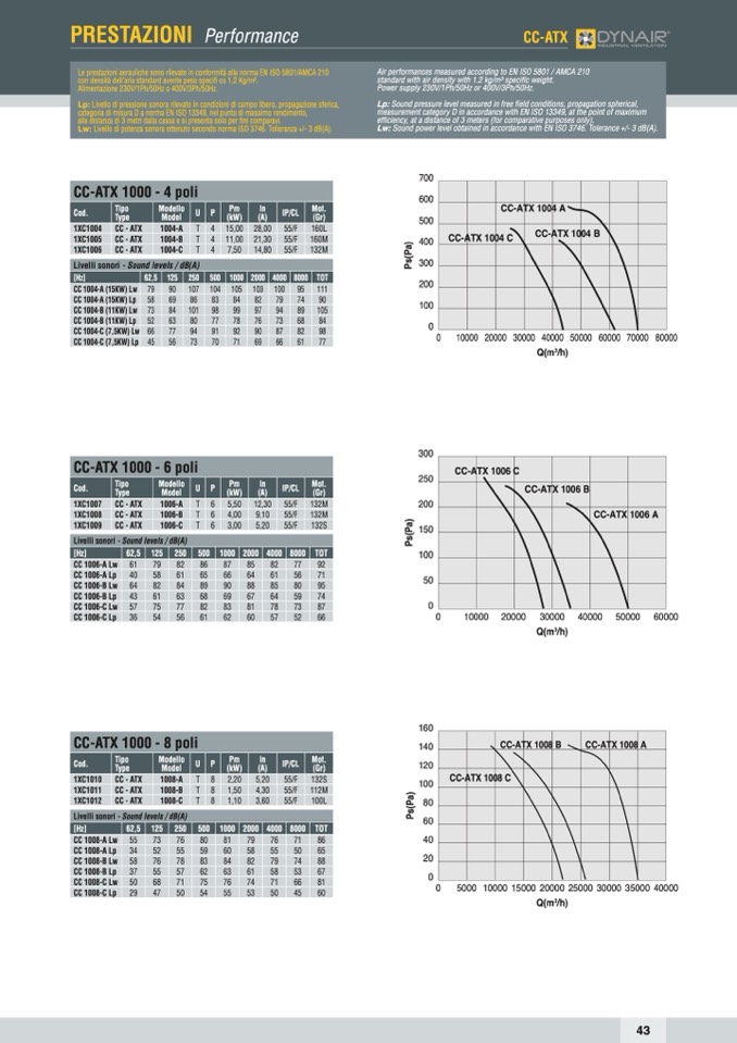 Le prestazioni aerauliche sono rilevate in conformità alla norma EN ISO 5801/AMCA 210