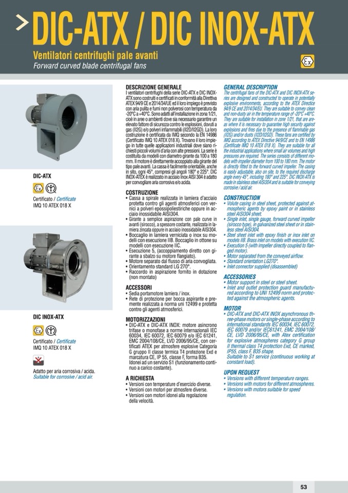 I ventilatori centrifughi della serie DIC-ATX e DIC INOX-