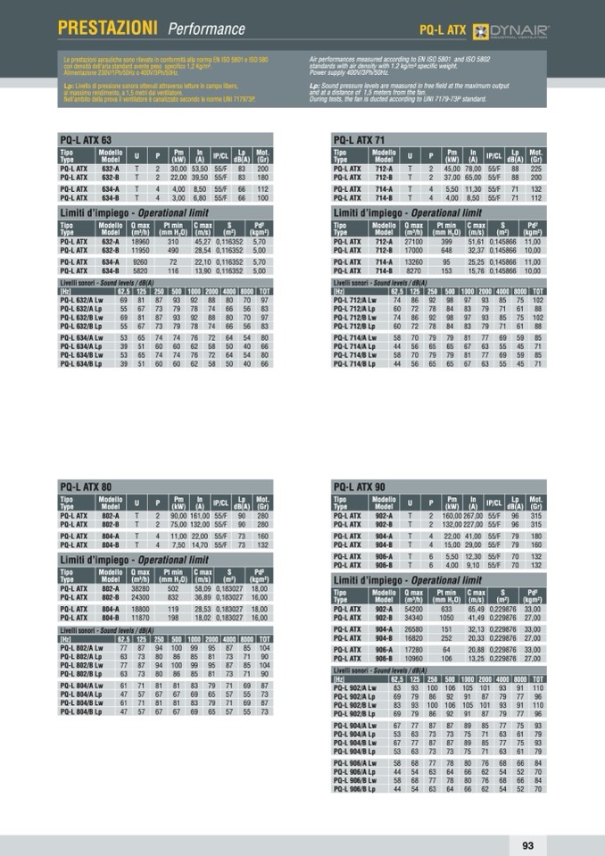 During tests, the fan is ducted according to UNI 7179-73P standard.