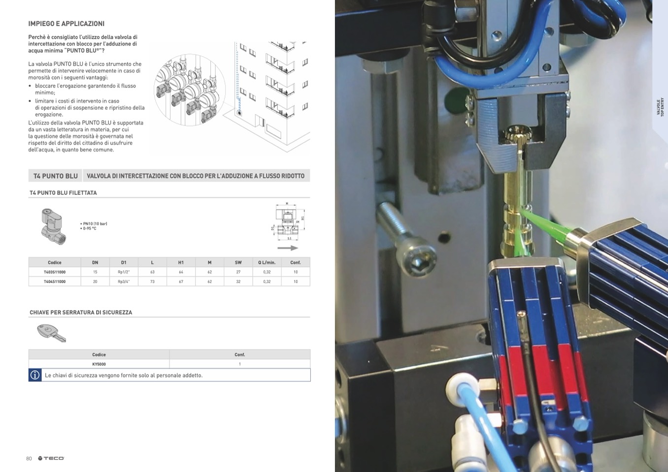 T4 PUNTO BLU VALVOLA DI INTERCETTAZIONE CON BLOCCO PER L'ADDUZIONE A FLUSSO RIDOTTO