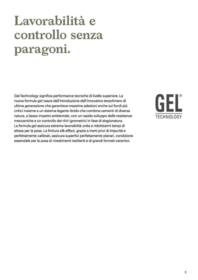 La formula gel assicura estrema lavorabilità unita a ridottissimi tempi di