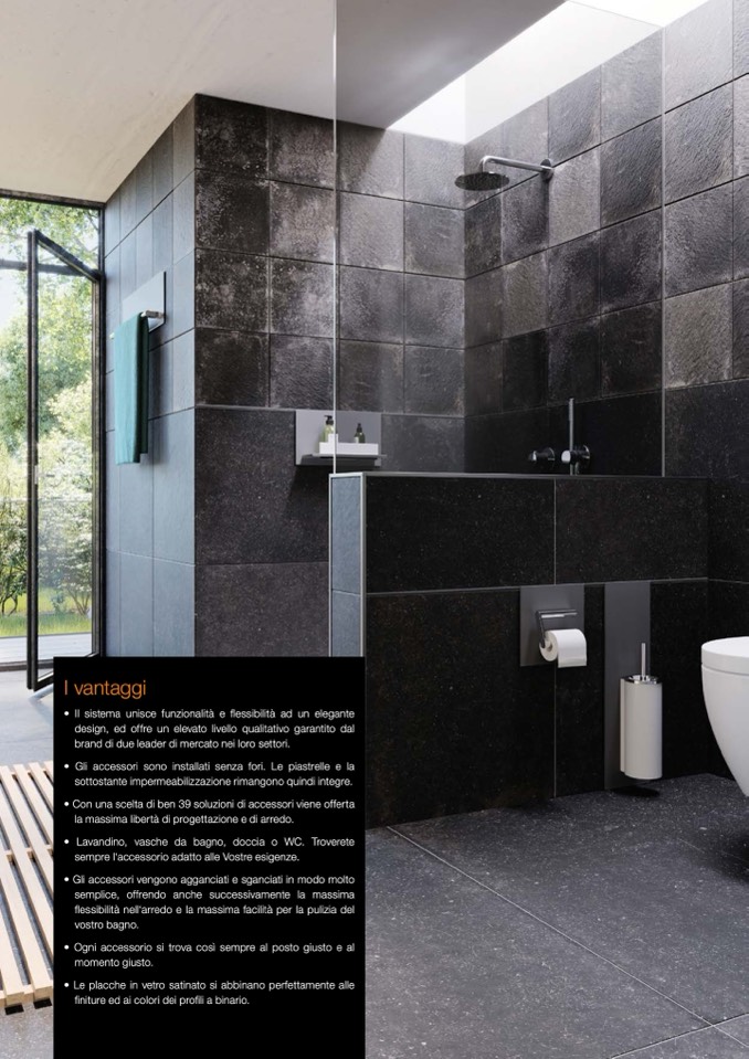 • Gli accessori sono installati senza fori. Le piastrelle e la