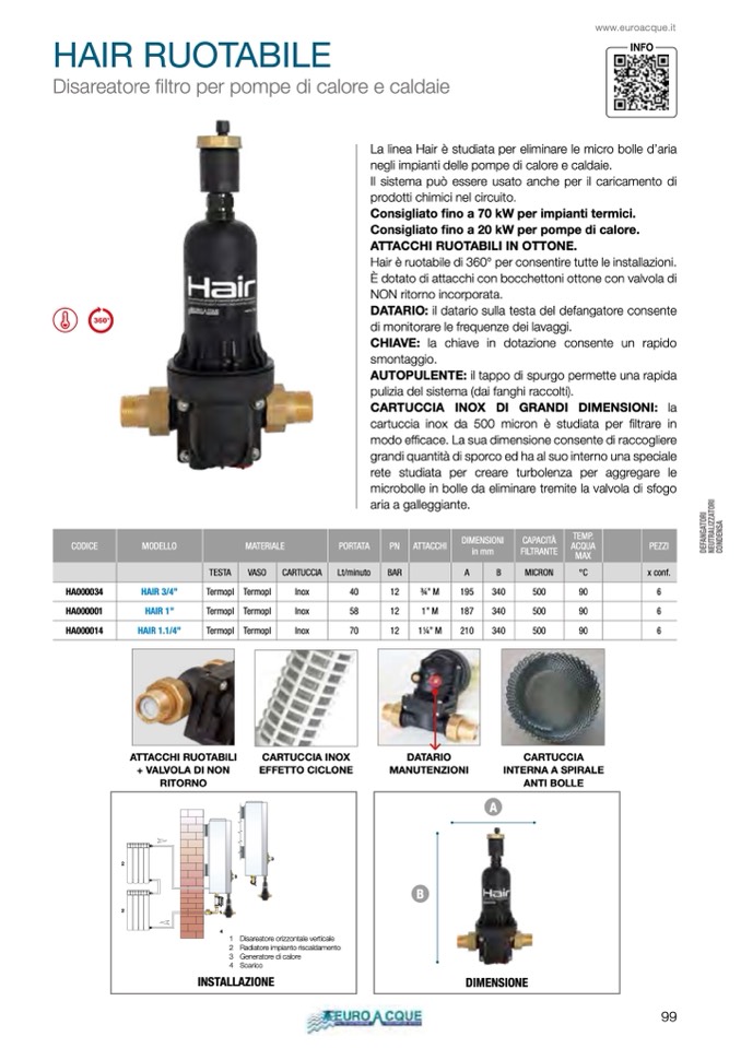 Consigliato fino a 70 kW per impianti termici.