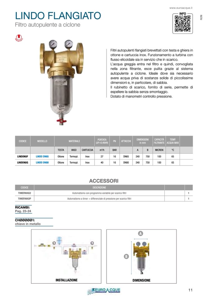 Filtri autopulenti flangiati brevettati con testa e ghiera in