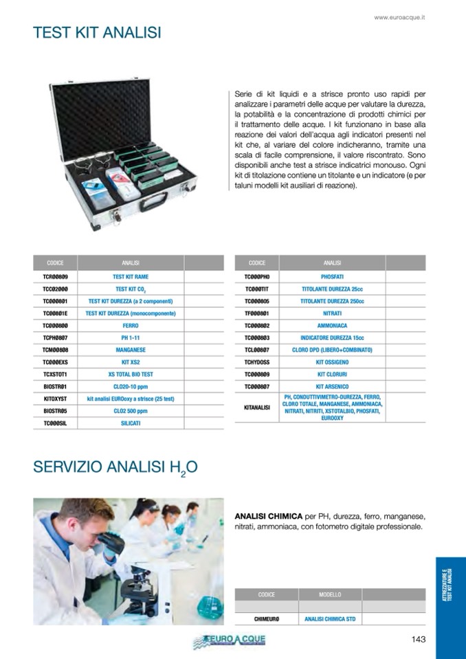 ANALISI CHIMICA per PH, durezza, ferro, manganese,