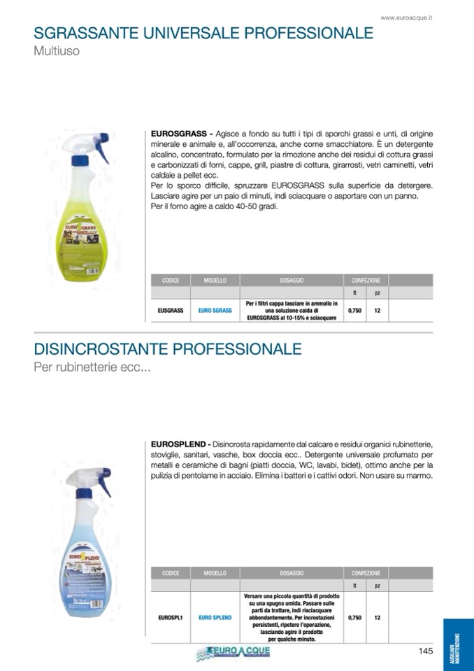 EUROSGRASS - Agisce a fondo su tutti i tipi di sporchi grassi e unti, di origine