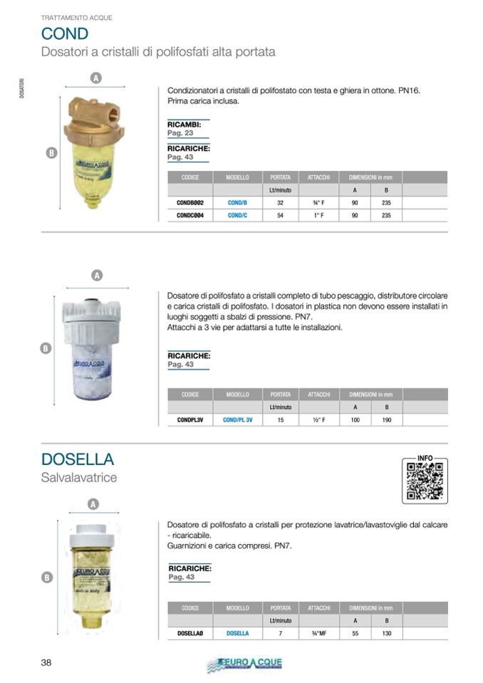 e carica cristalli di polifosfato. I dosatori in plastica non devono essere installati in