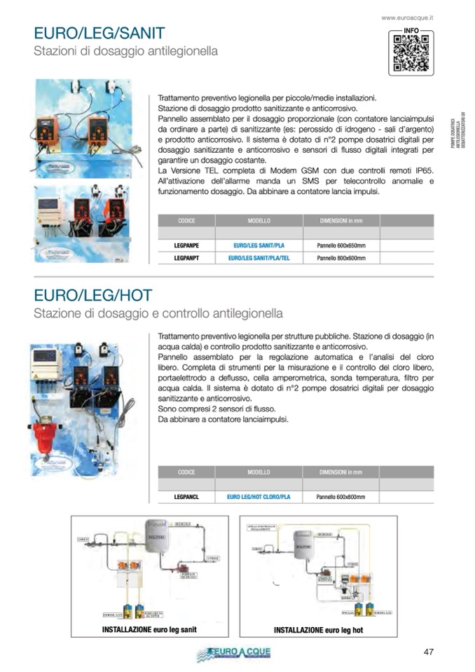 acqua calda. Il sistema è dotato di n°2 pompe dosatrici digitali per dosaggio