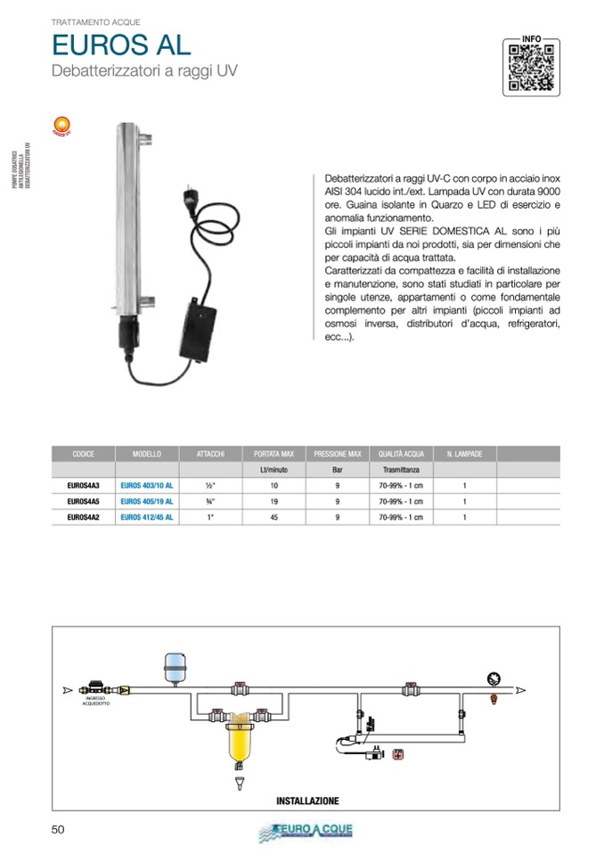 Gli impianti UV SERIE DOMESTICA AL sono i più