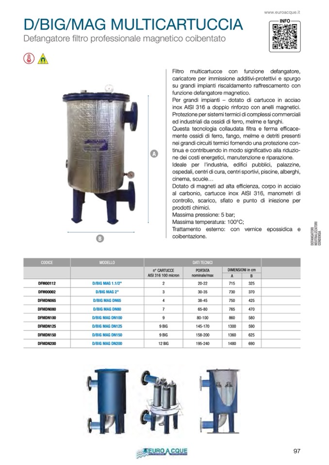 inox AISI 316 a doppio rinforzo con anelli magnetici.