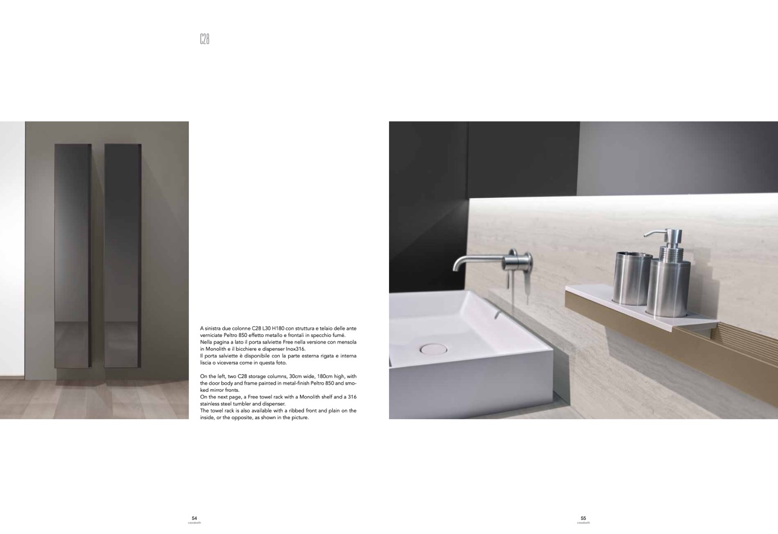 On the next page, a Free towel rack with a Monolith shelf and a 316
