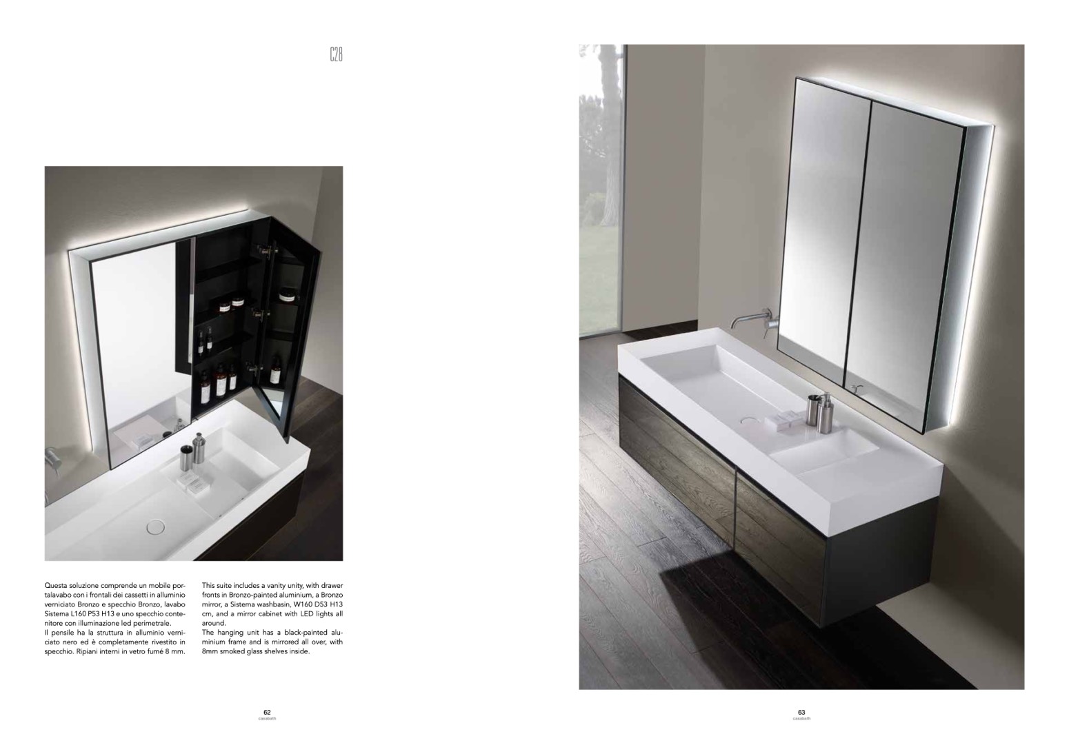 cm, and a mirror cabinet with LED lights all