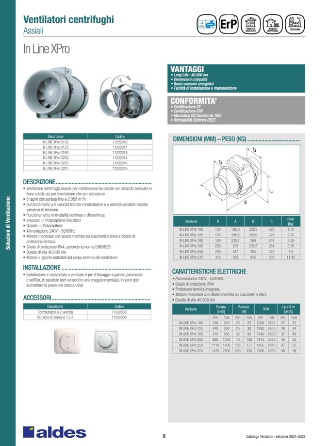 • Ventilatore centrifugo assiale per installazione da canale con attacchi aeraulici in