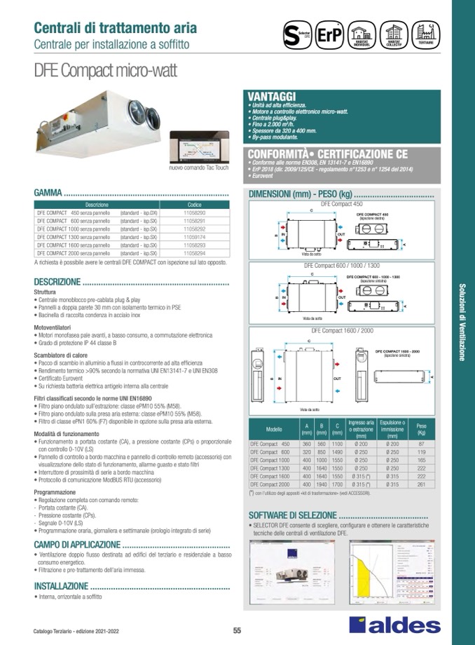 A richiesta è possibile avere le centrali DFE COMPACT con ispezione sul lato opposto.