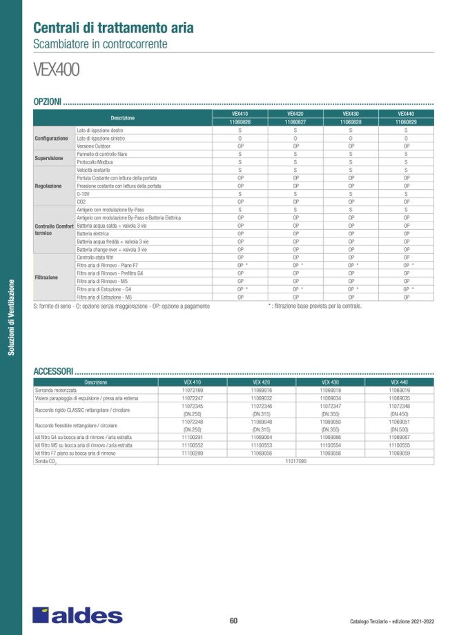 S: fornito di serie - O: opzione senza maggiorazione - OP: opzione a pagamento