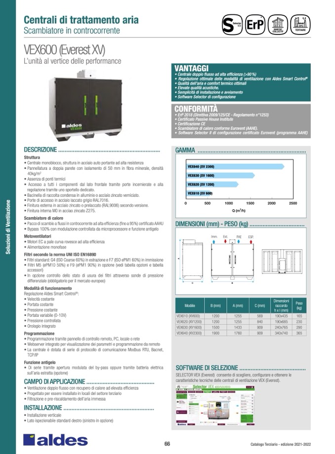 caratteristiche tecniche delle centrali di ventilazione VEX (Everest).